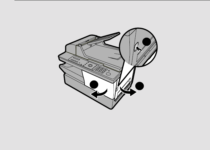 1 Press the side cover release ➊, open the side cover ➋, and then open
