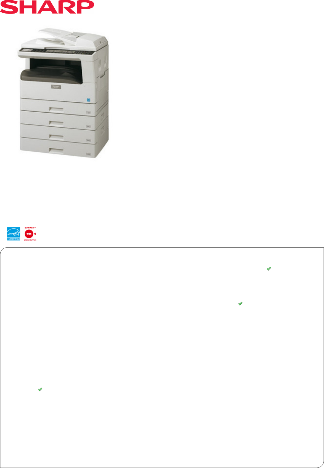 18 ppm in 600 x 600 dpi and with Sharp Printer Language with Compression (SPLC) as standard, data transfer is faster