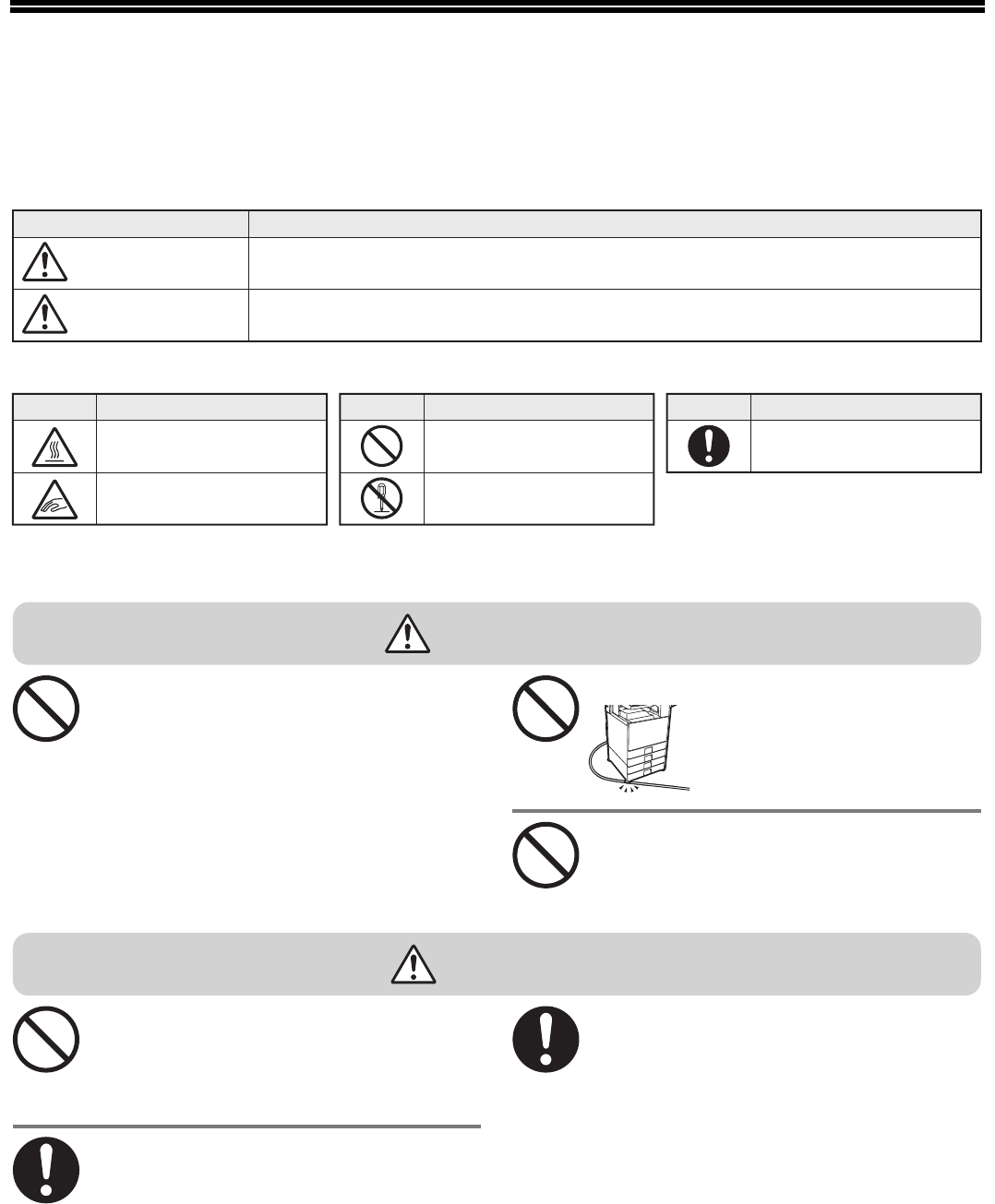 To ensure safe use of the machine, this manual uses various safety symbols. The safety symbols are classified as