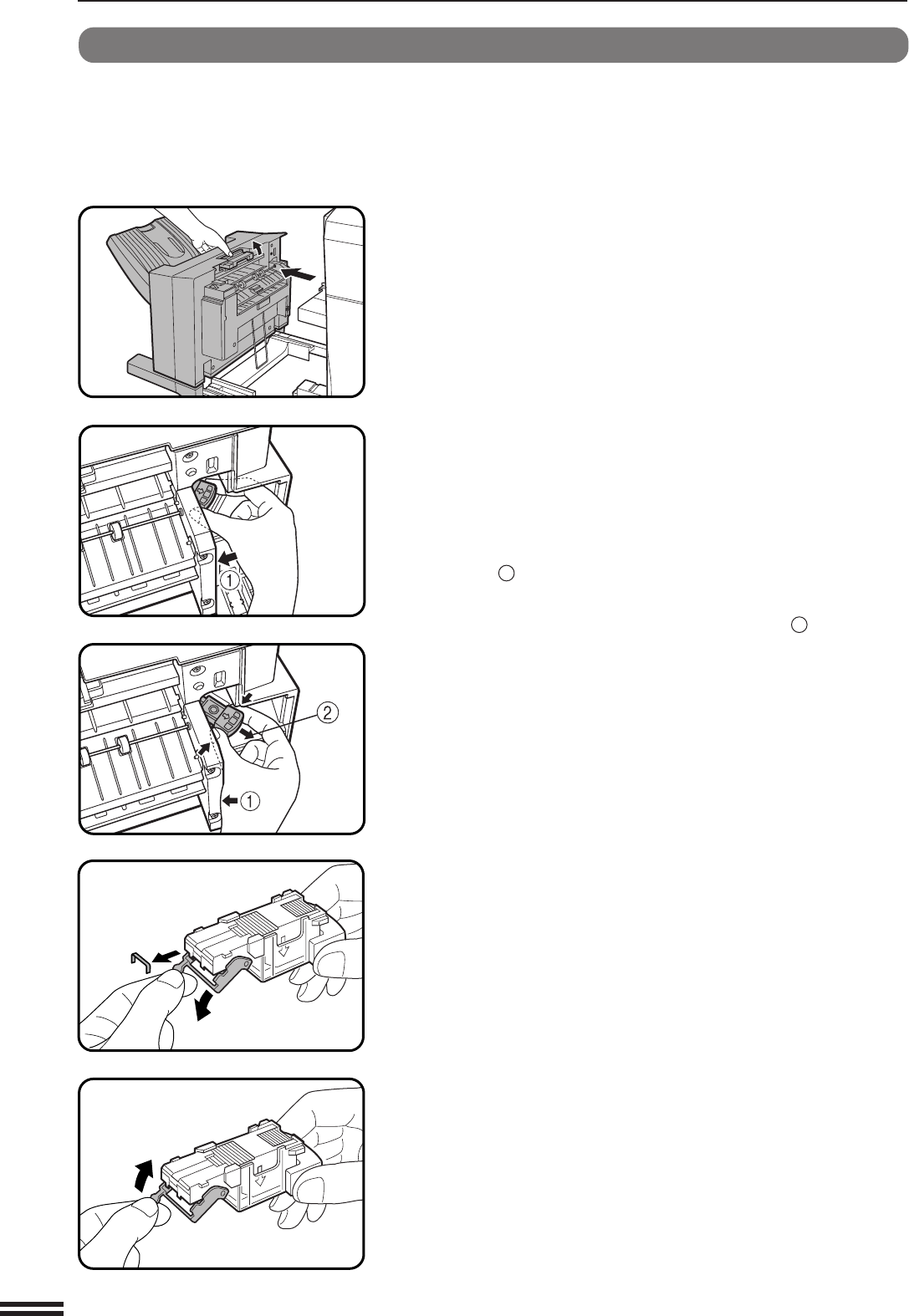 STAPLER POSITION OR STAPLE JAM” will appear. Remove the