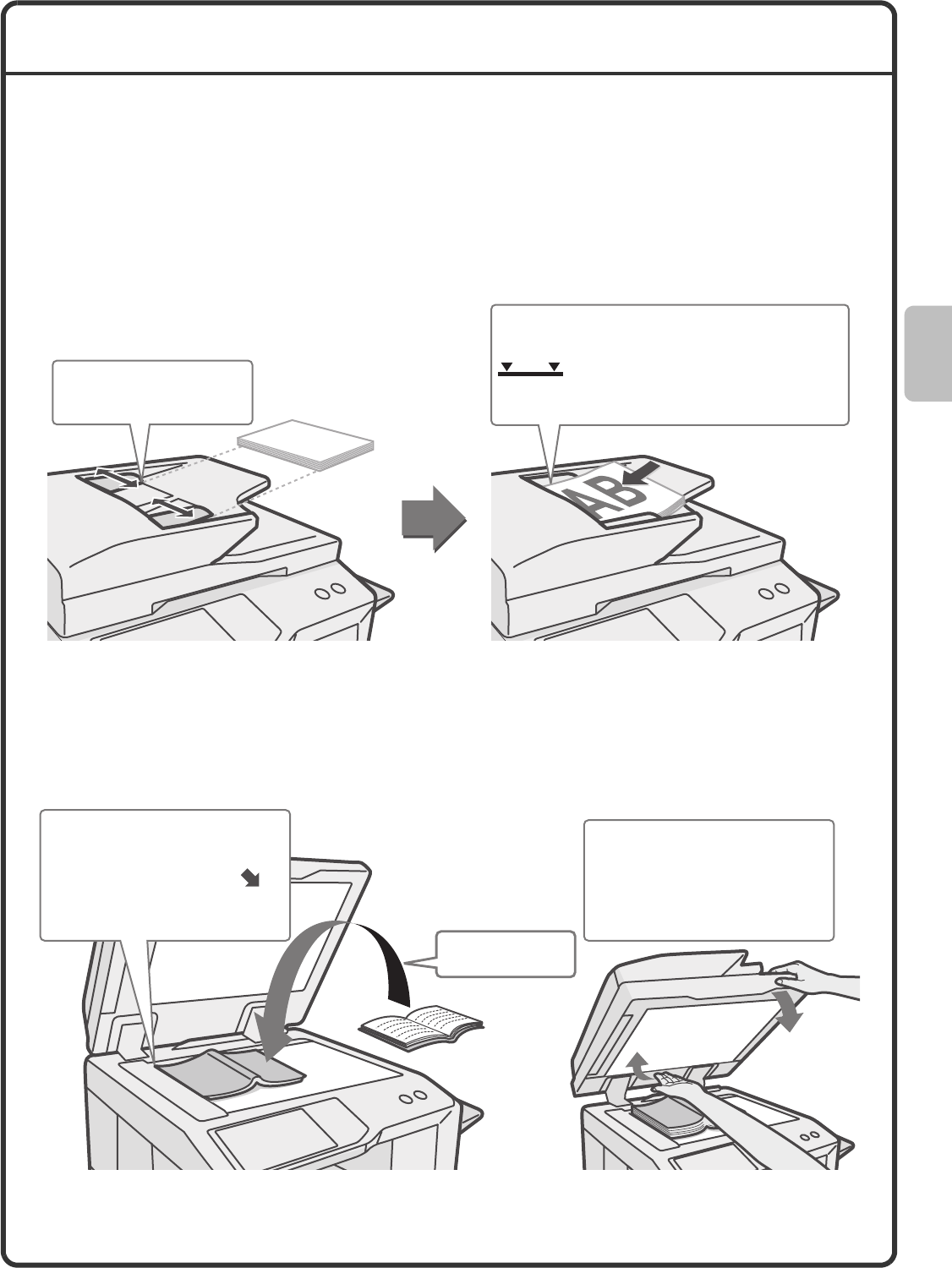 Place the originals face up with the edges
