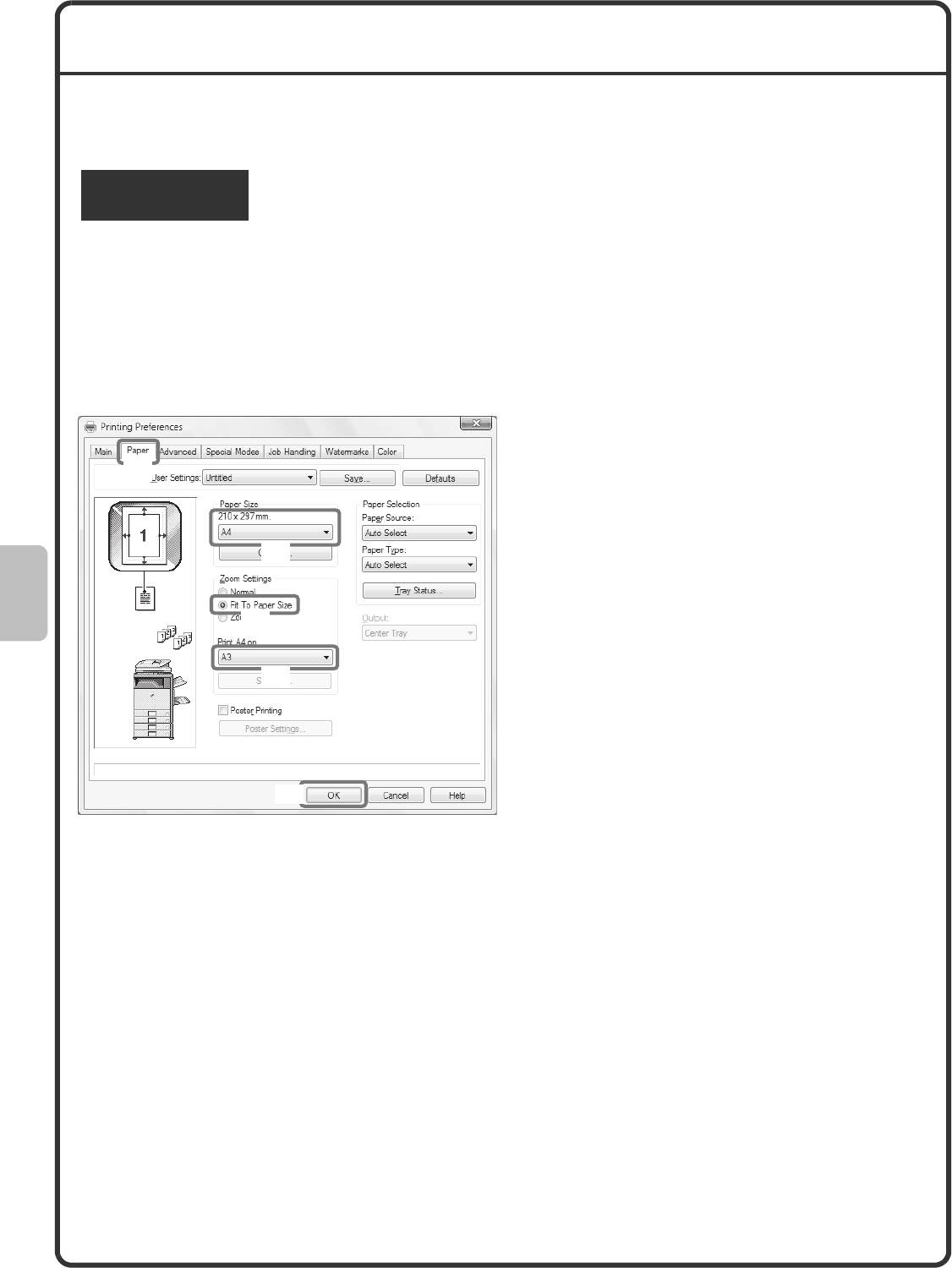 size. In this example, an A4 size image will be printed on A3 size paper.