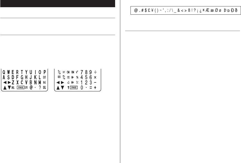 • Numbers, alphanumeric letters, symbols, and “+ – x ÷ .” can be