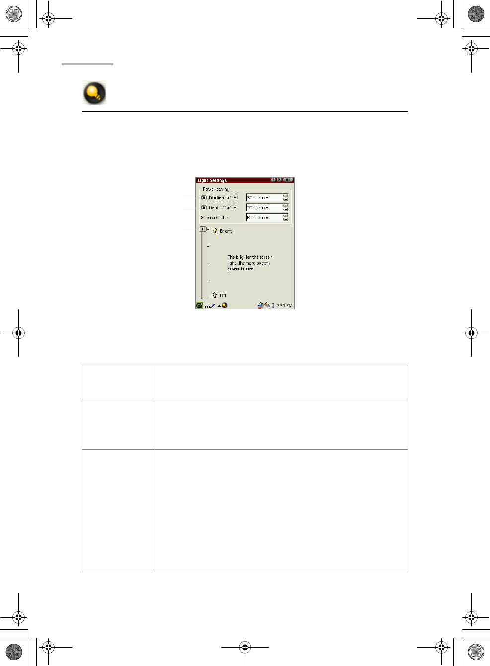 Dim light after When checked, the frontlight will be dimmed if no operation is