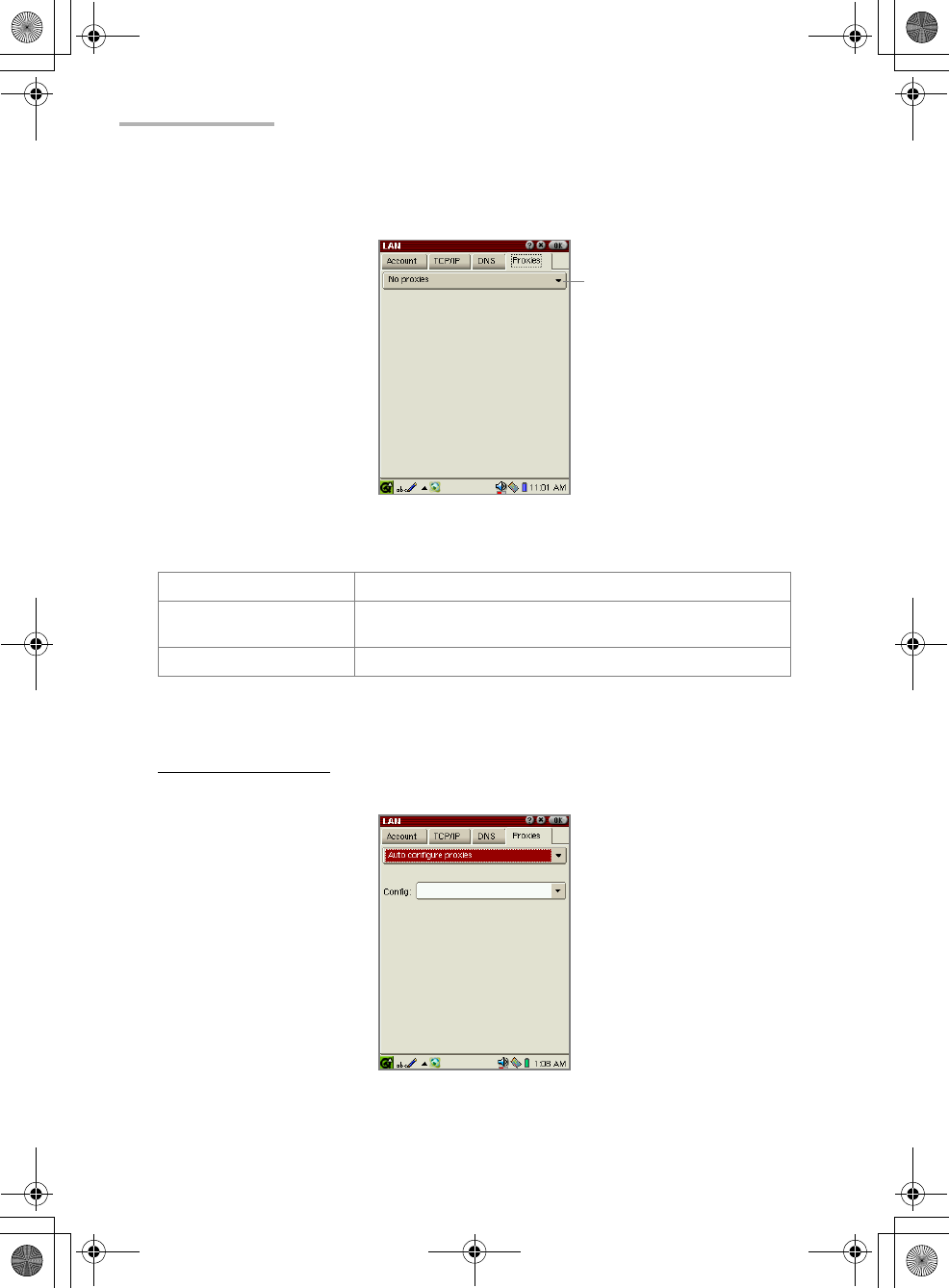 No proxies Select when you do not set a proxy server.