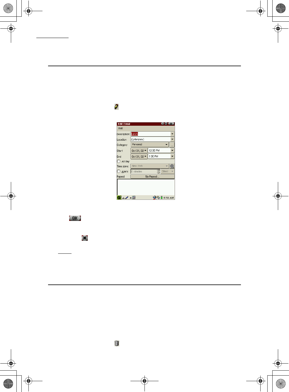 The Edit Event screen turns to the previous screen.