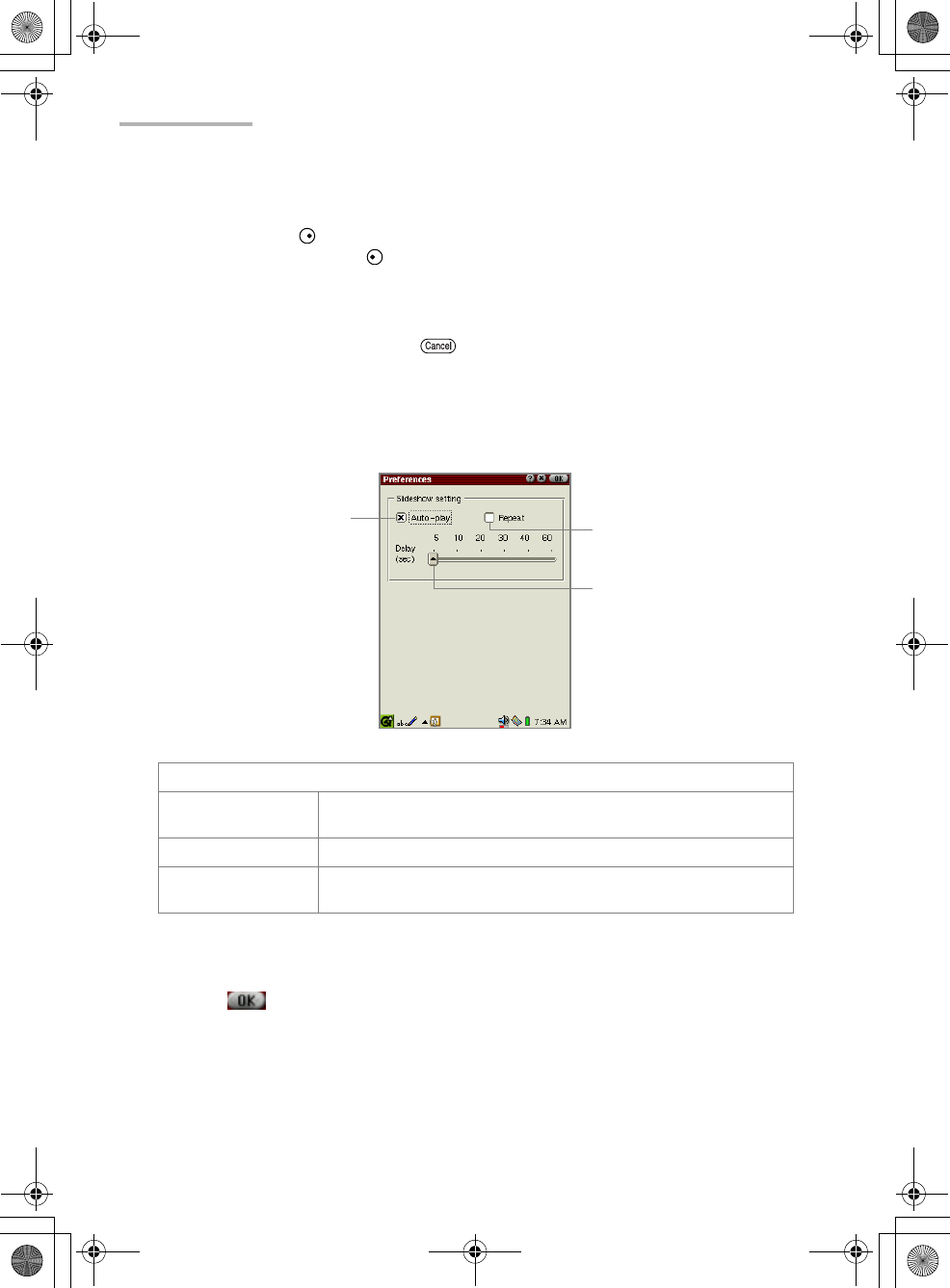 • The View menu settings (Rotate, etc.) will not be effective for the Slideshow