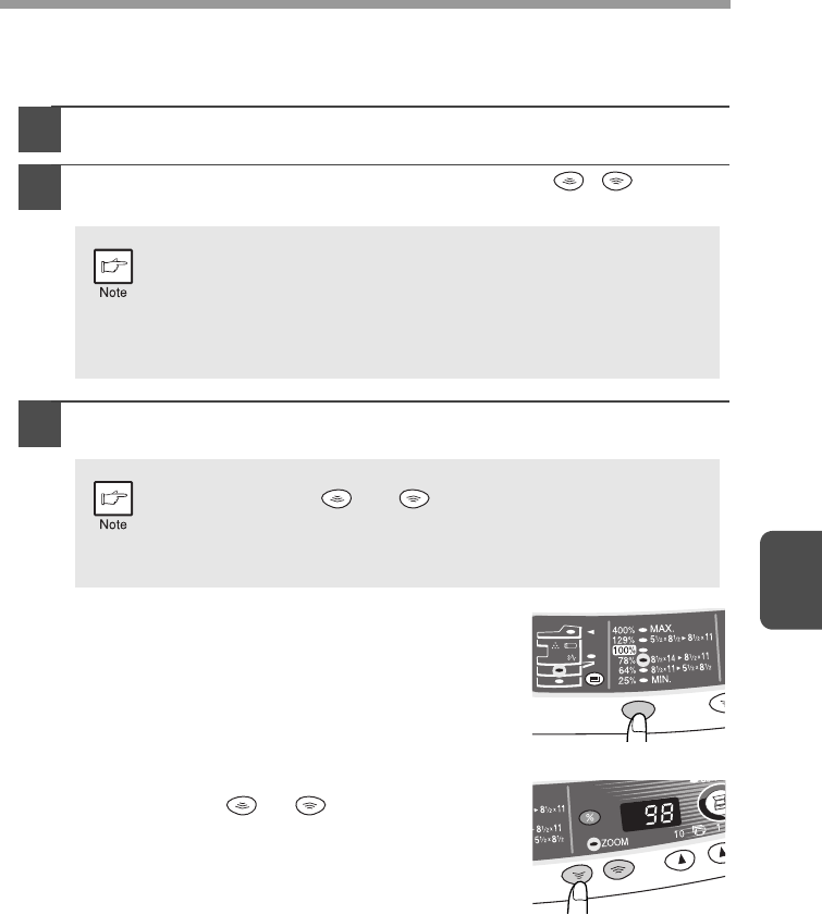 Use the copy ratio selector key and/or ZOOM ( , ) keys to