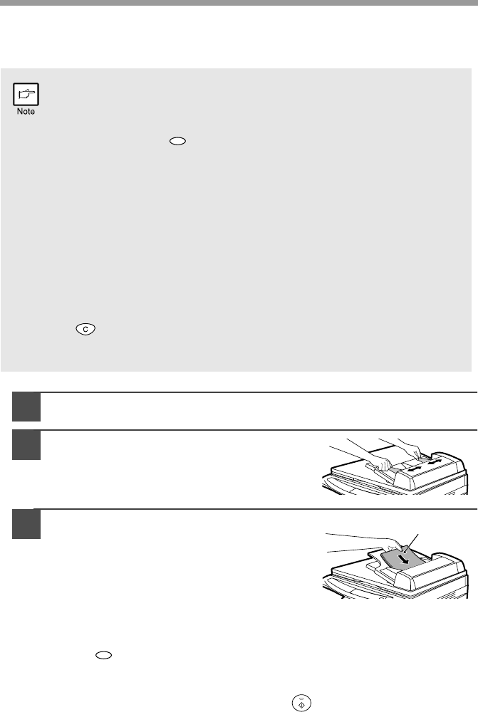 • To stop continuous copying using the SPF/RSPF, press the clear