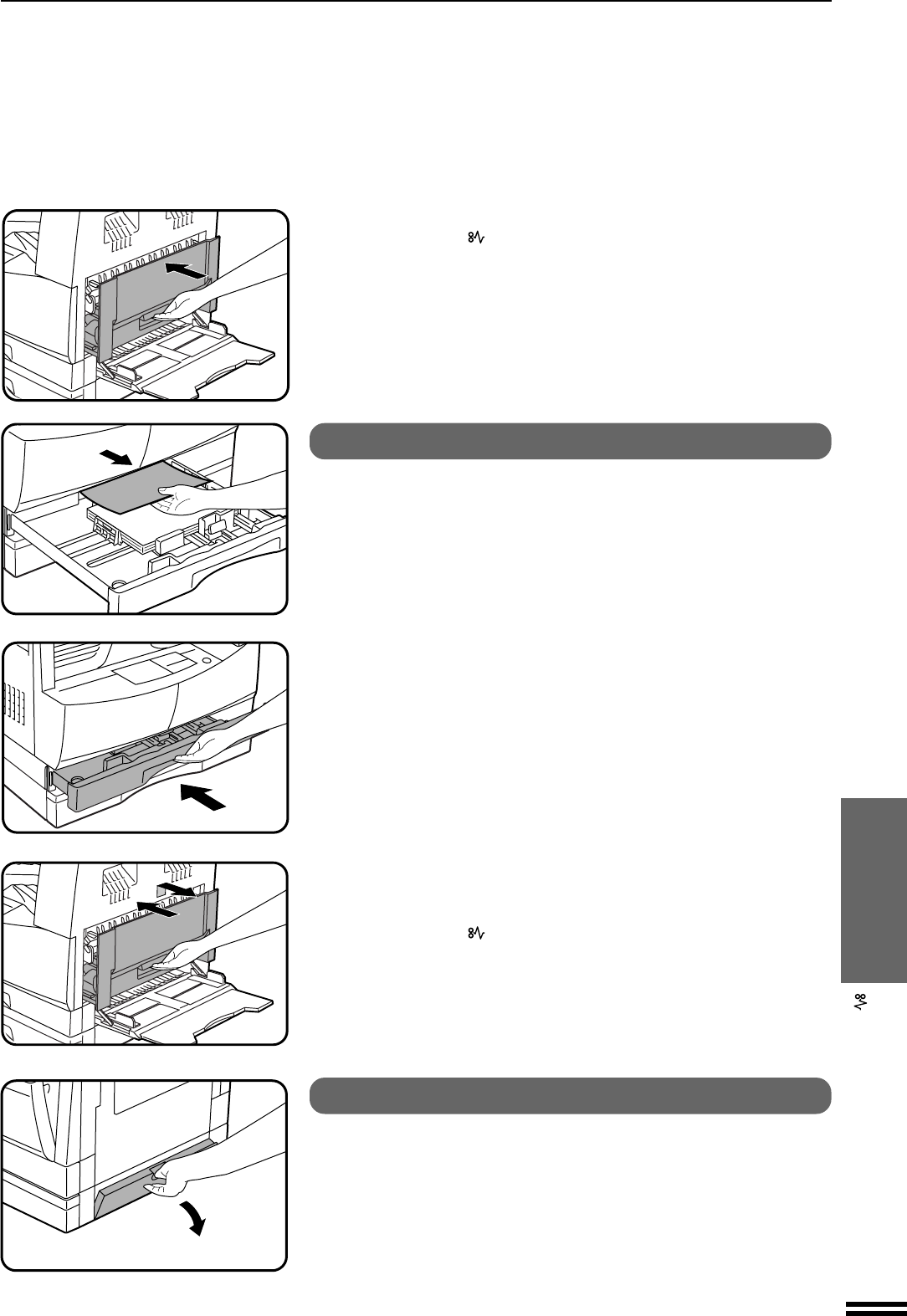 Before opening the paper tray, be sure to open the bypass tray, lift slightly on