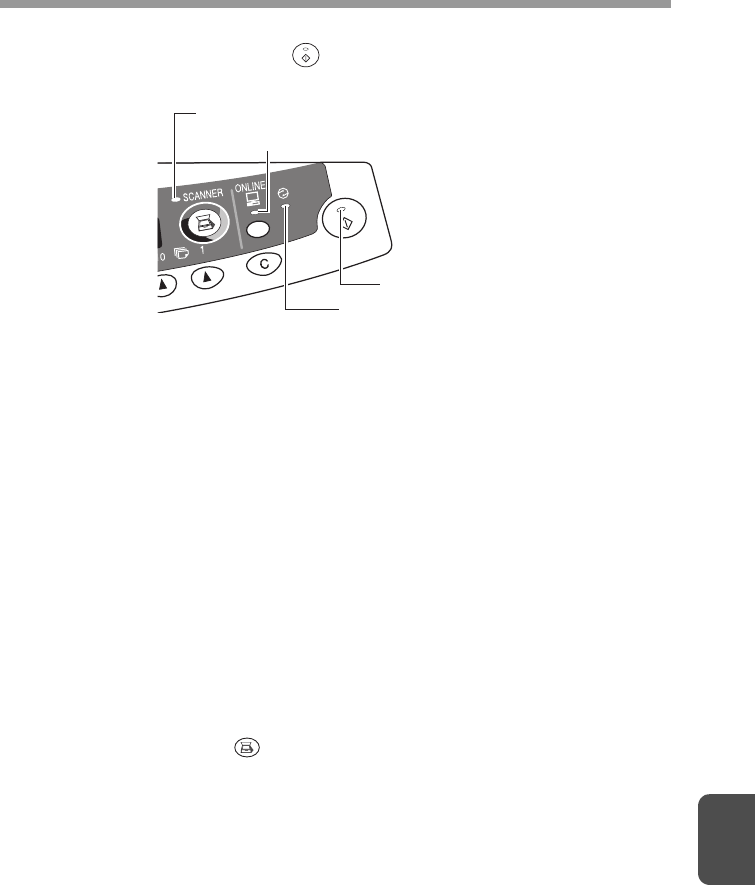 The ONLINE indicator and the start ( ) indicator indicate the state of the printer or