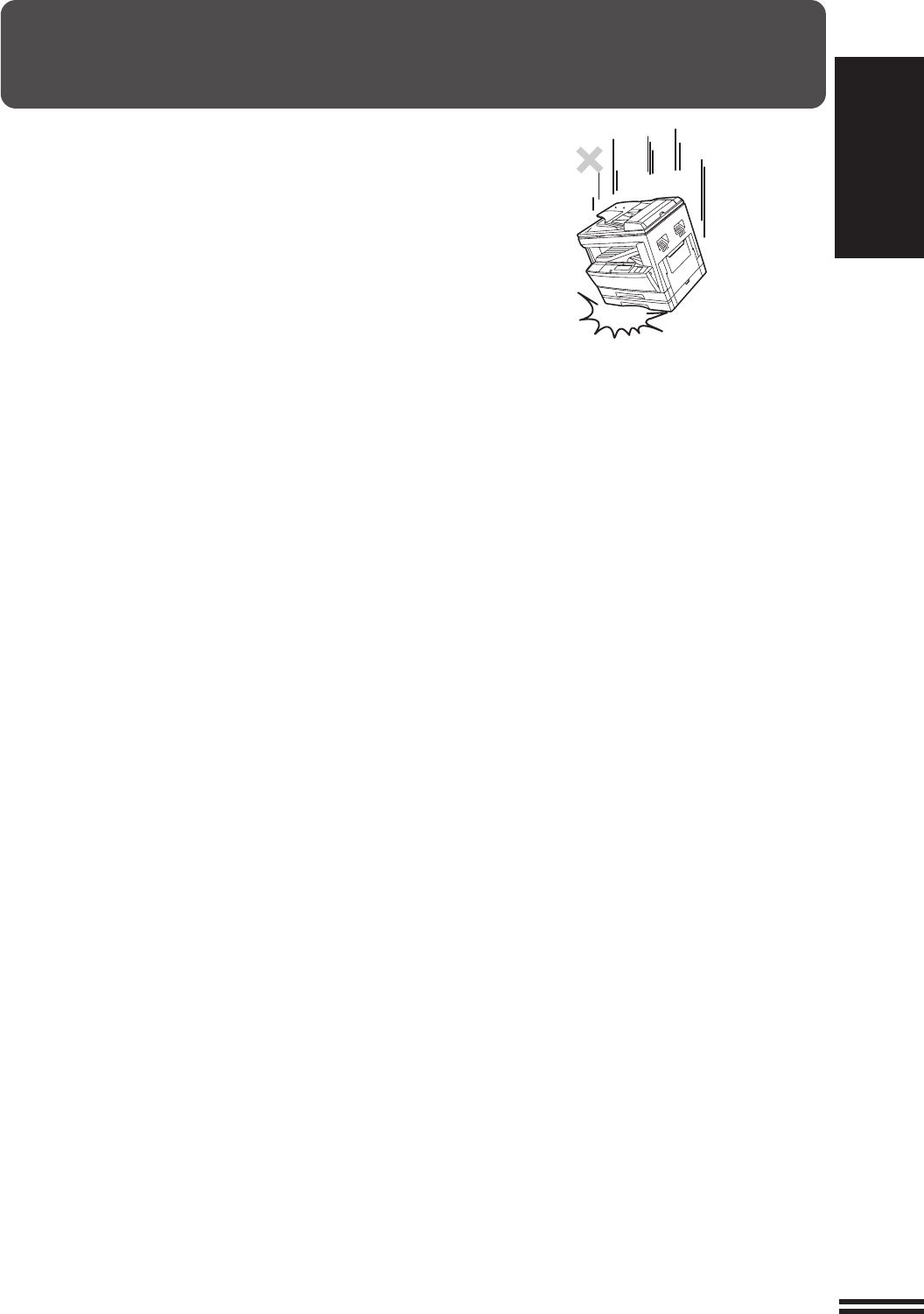 Do not drop the copier, subject it to shock or strike it against any