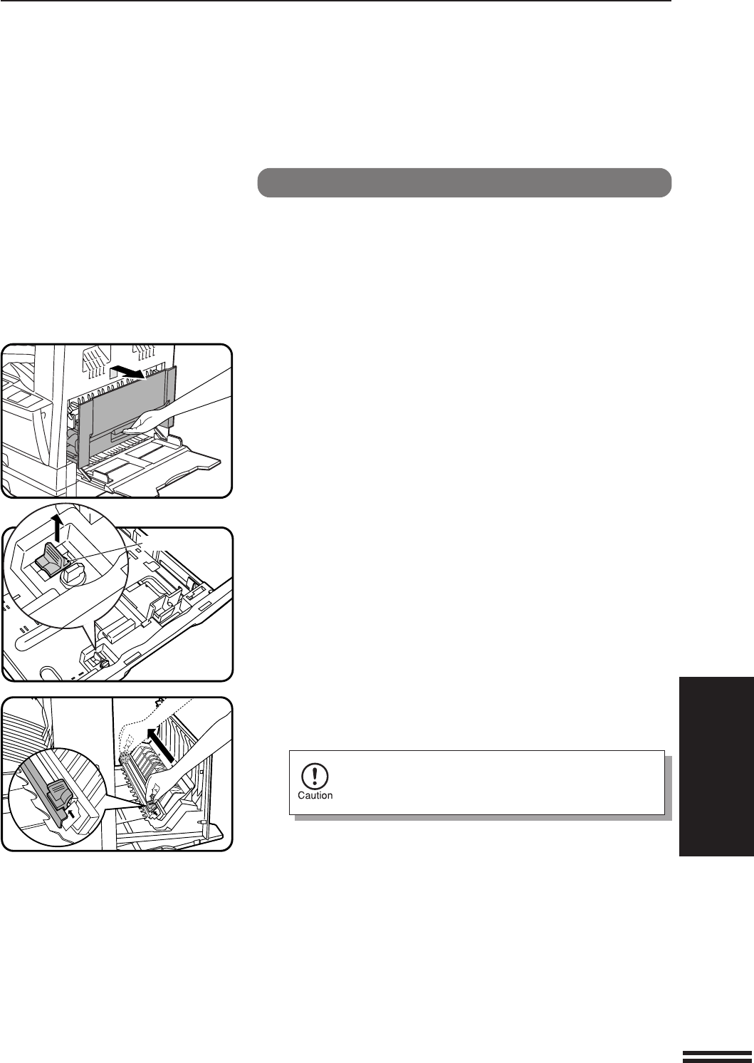 Open the bypass tray. Lift slightly on the side cover and
