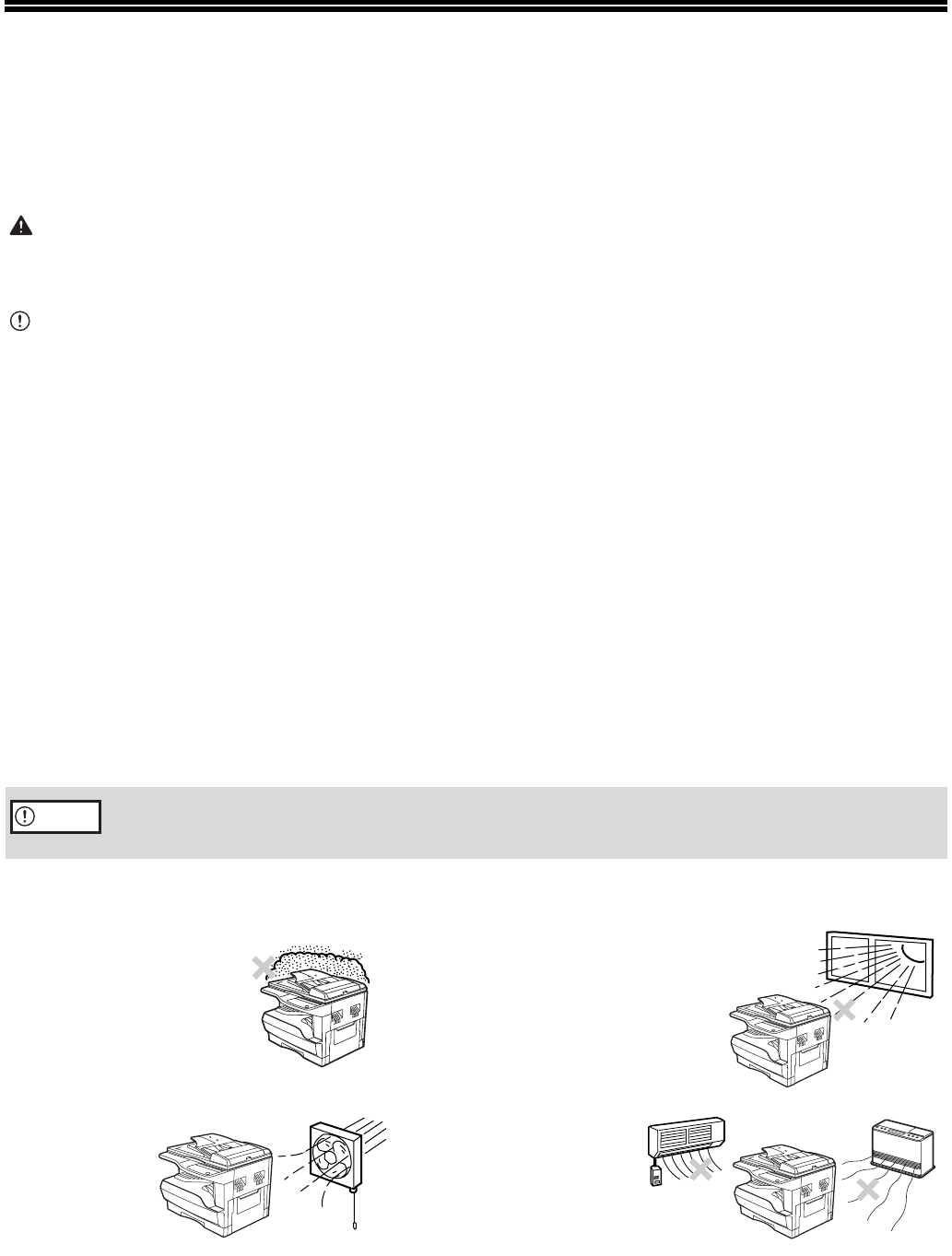 • Do not cover the machine with a dust cover, cloth or plastic film while the power is on. Doing so may prevent heat