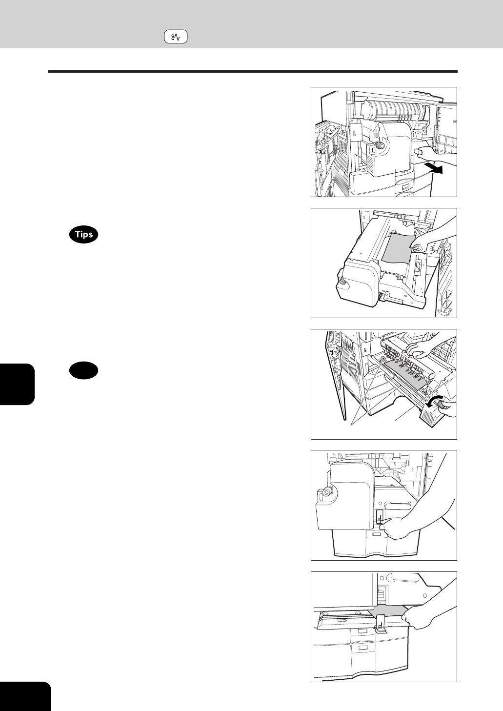 - If a sheet of paper is misfed on the transfer belt, remove it.