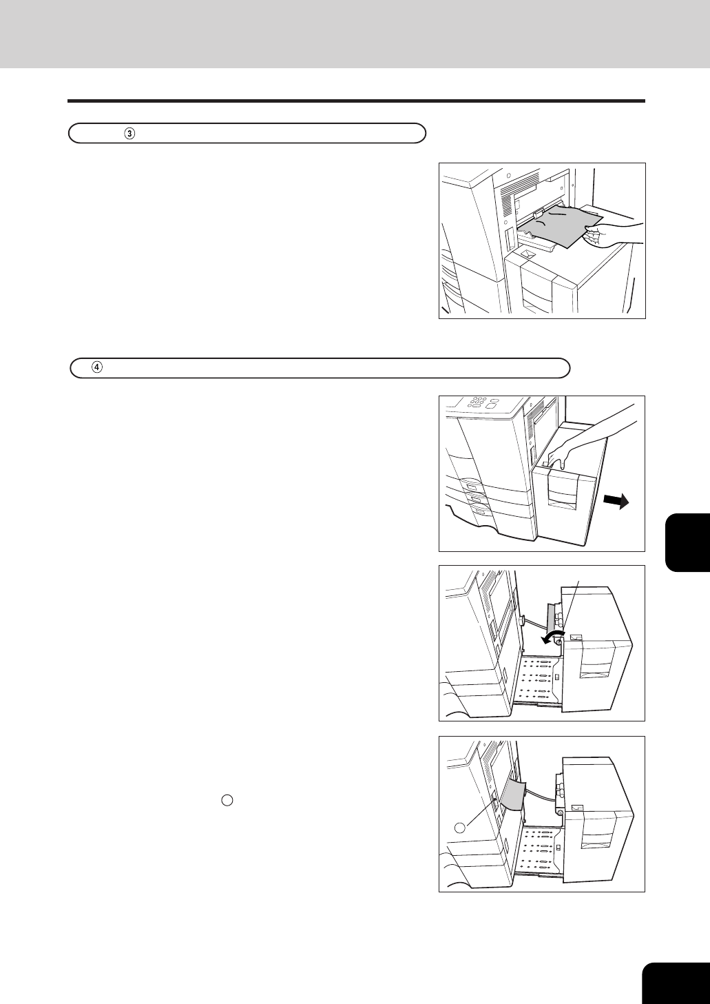When paper misfeeds inside of the copier, pull up