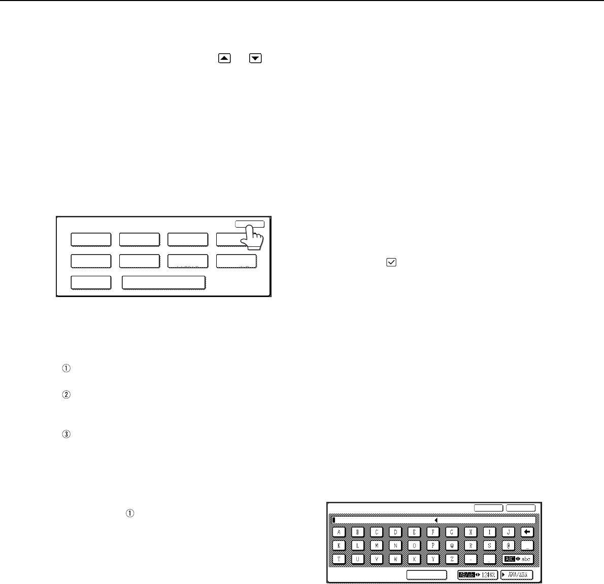 function, touch the check box key so that a
