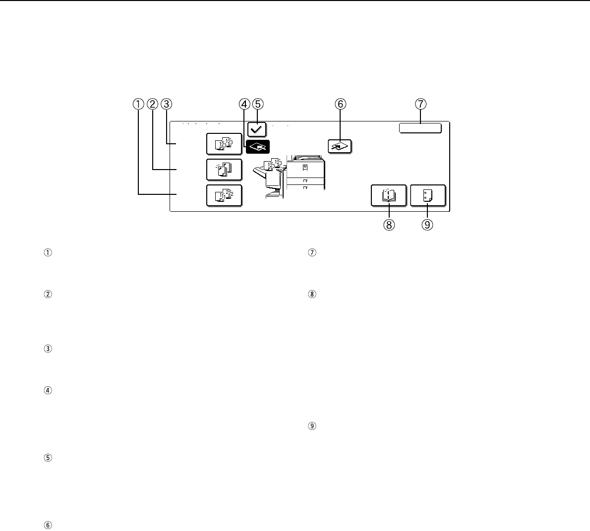 Touch the [Output] key on the main screen of copy mode to display the screen that allows selection of sort, staple
