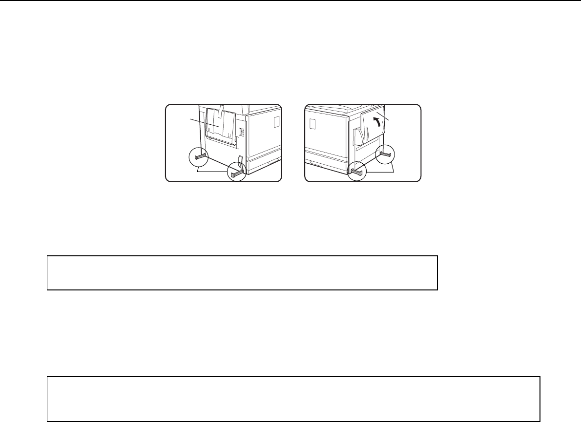 The stand/paper drawer is on casters for moving. Unlock the adjusters of the stand/paper drawer and gently move