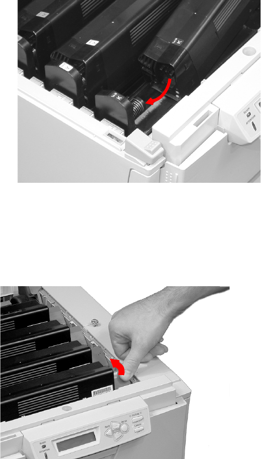 colored lock lever back to open the toner slot and lock it