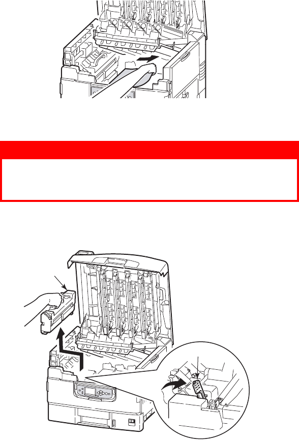 3. Carefully remove any paper on the belt.