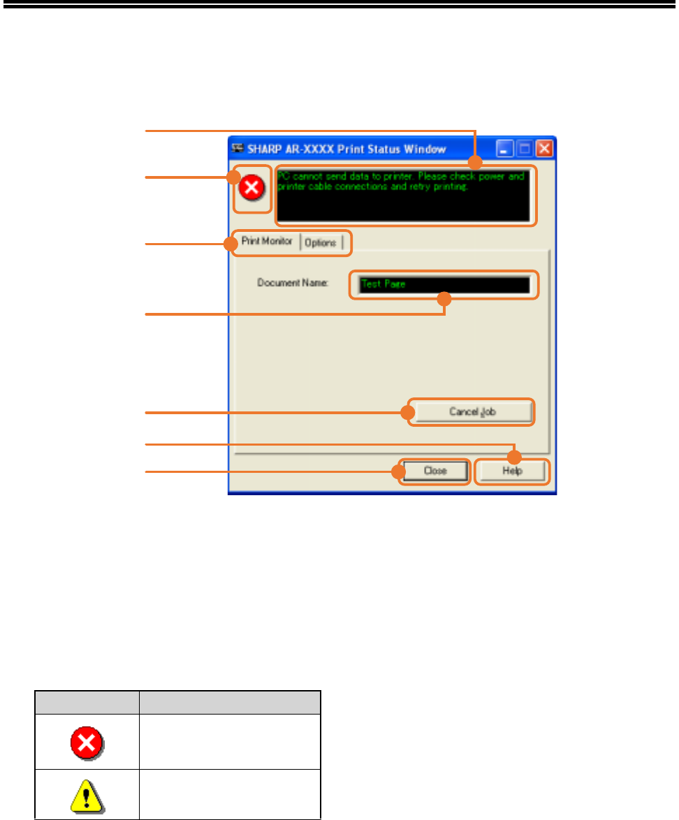 The Print Status Window is a utility that monitors the machine and informs you of the name of the document being