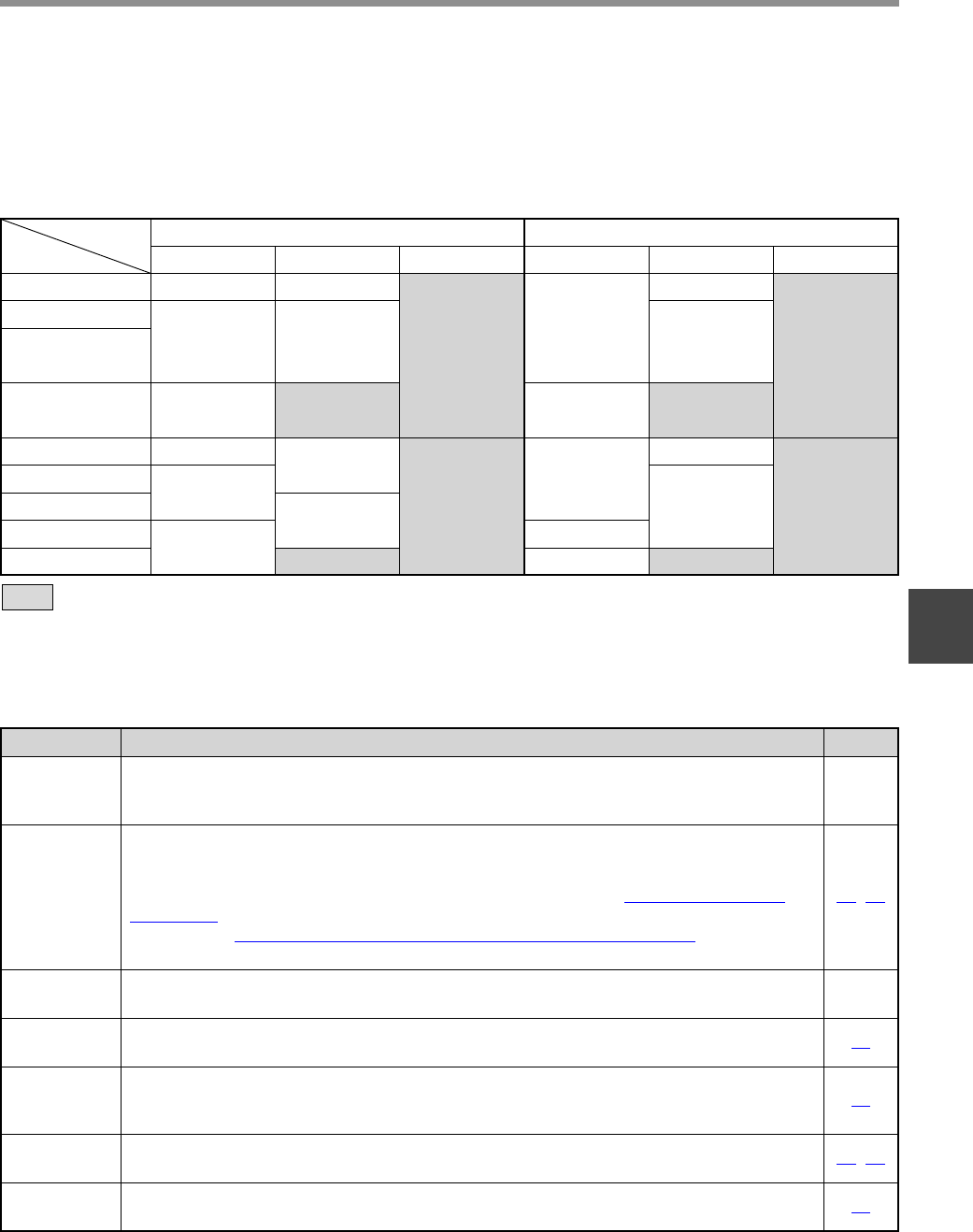 table below shows the relation between the possible scanning area and the scanning conditions. (Note that the following