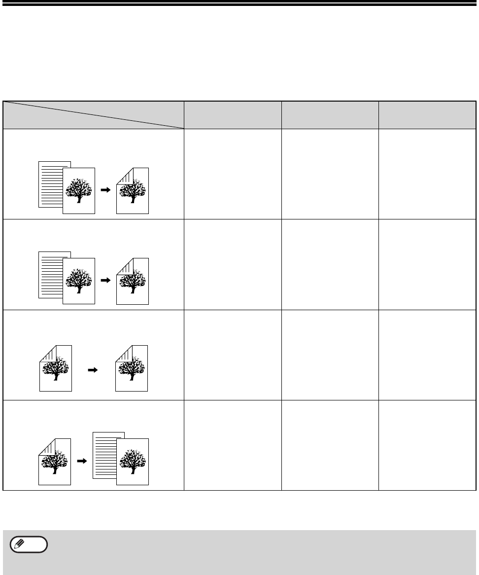The machine is capable of the following types of automatic two-sided copying. The copy paper is turned over