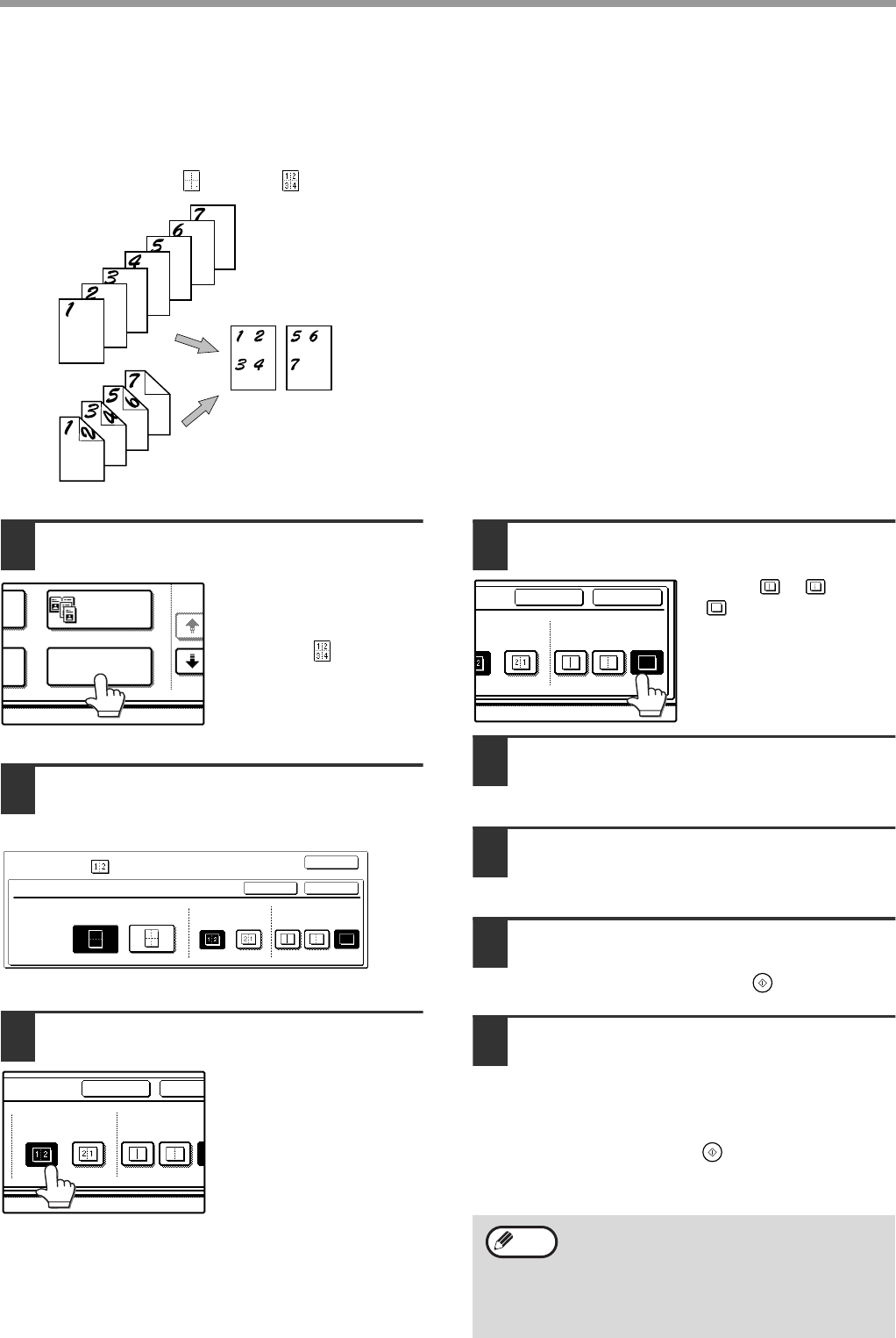 The multi shot copy function is used to copy two or four originals onto one sheet of copy paper in a specified order.