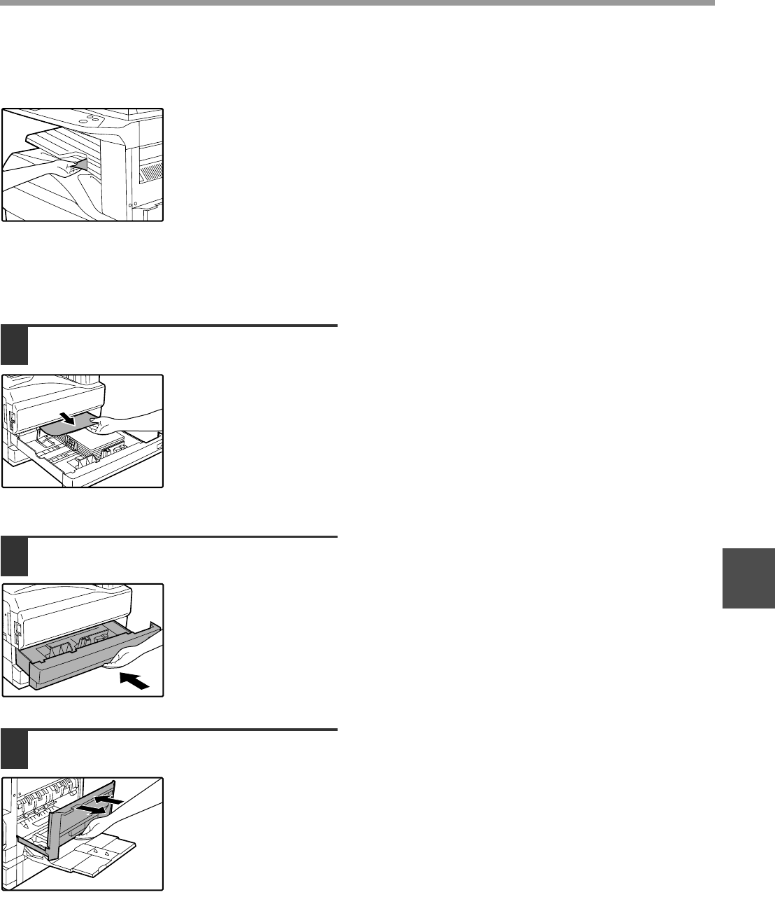 Make sure that there is no misfed paper in the machine before pulling the tray out. (p.65)