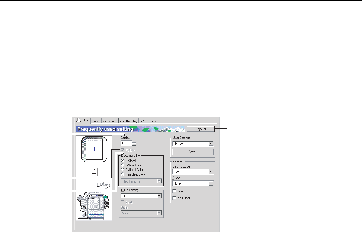 application. The print functions can also be selected in the printer driver properties window that appears when