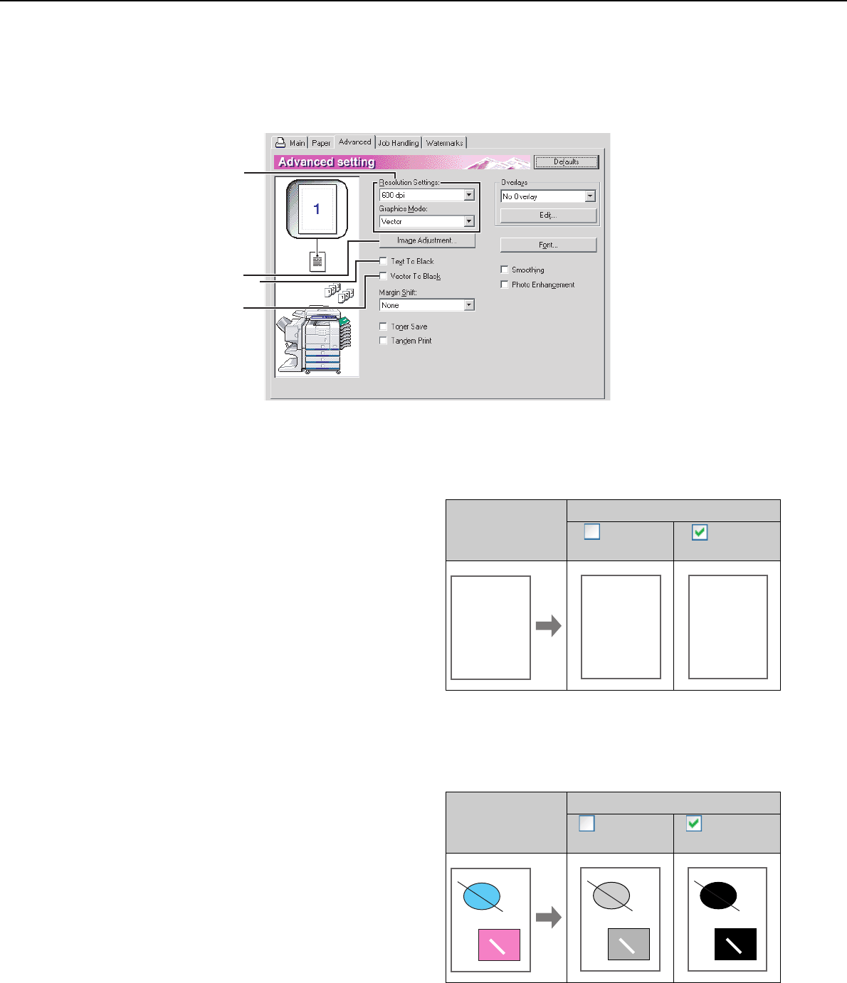 The following screen appears when the [Advanced] tab is selected. The settings and buttons in this screen are