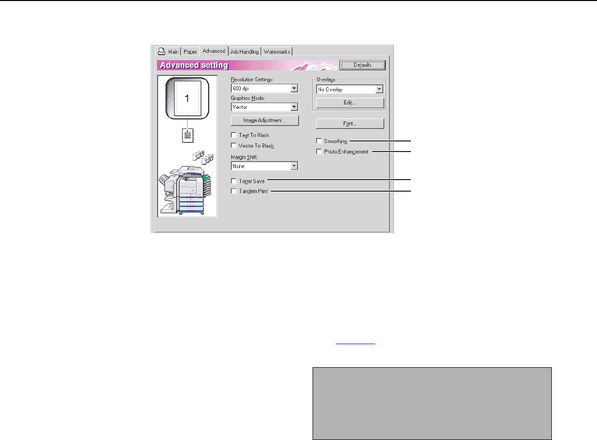 SELECTING PRINTING FUNCTIONS Settings in the [Advanced] tab (continued)