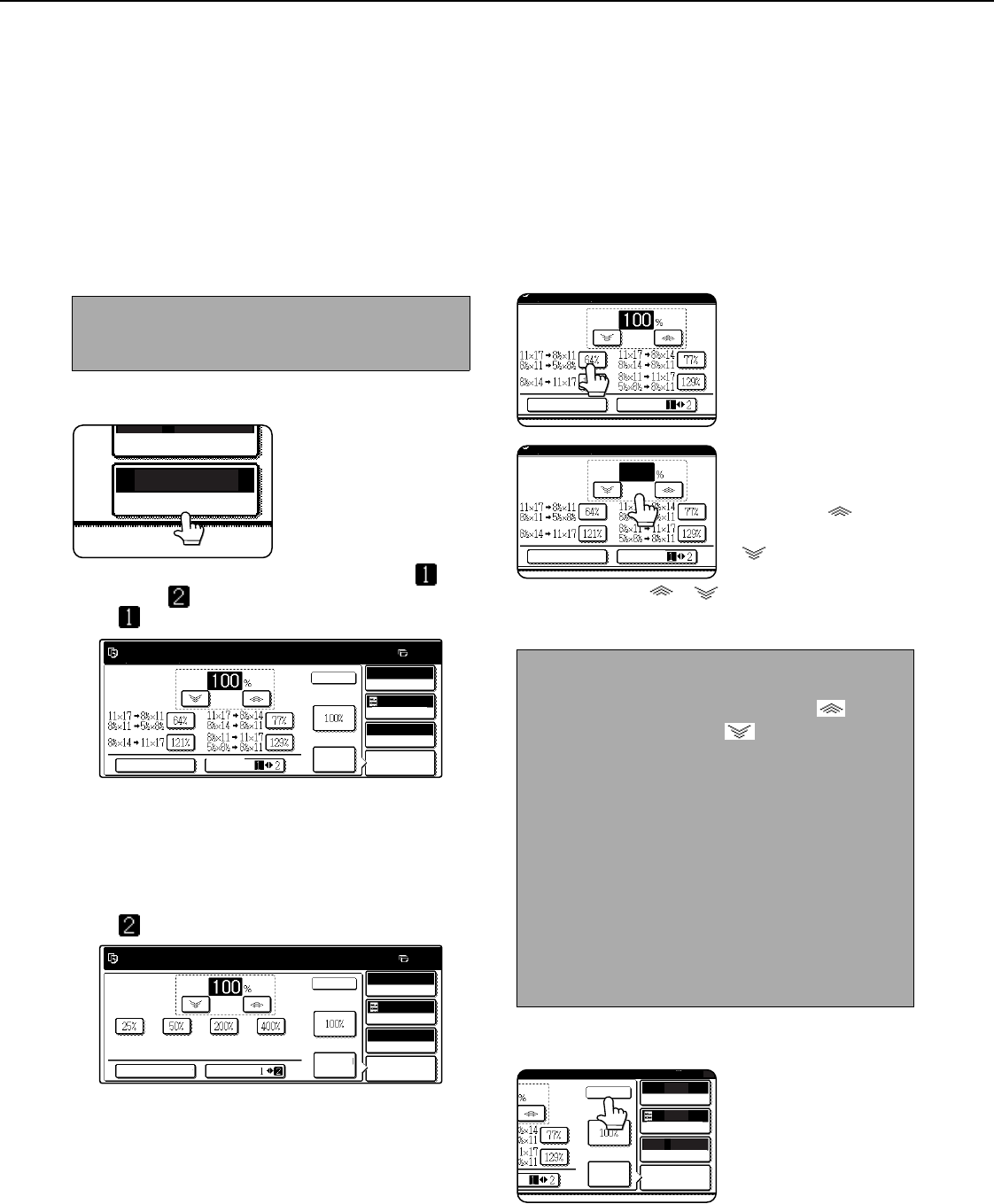 Preset ratios (maximum 400%, minimum 25%) can be selected with the enlargement and reduction keys. In addition,