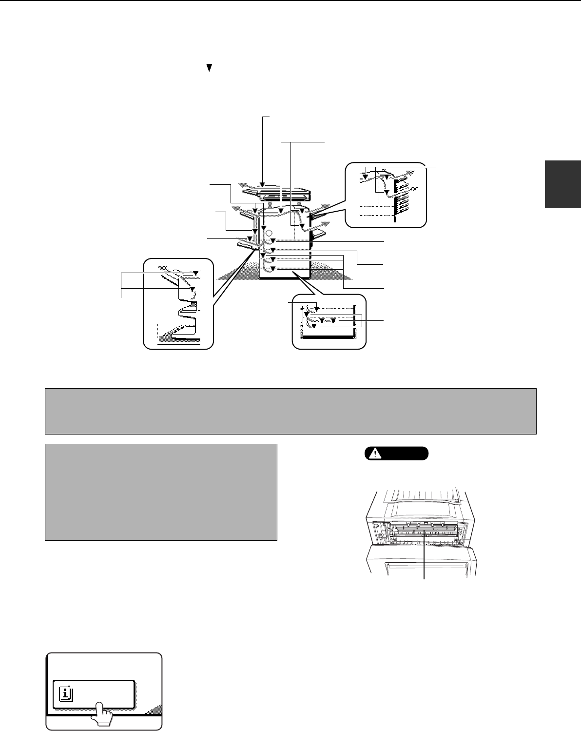 Misfeed removal guidance can be displayed by touching the [INFORMATION] key on the touch panel after a misfeed