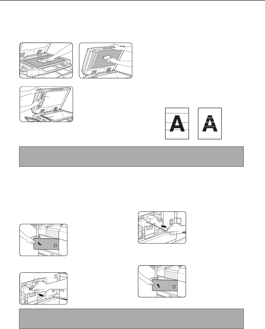 lines in scanned images. These will show up as defects when the images are printed. Always keep these parts clean.