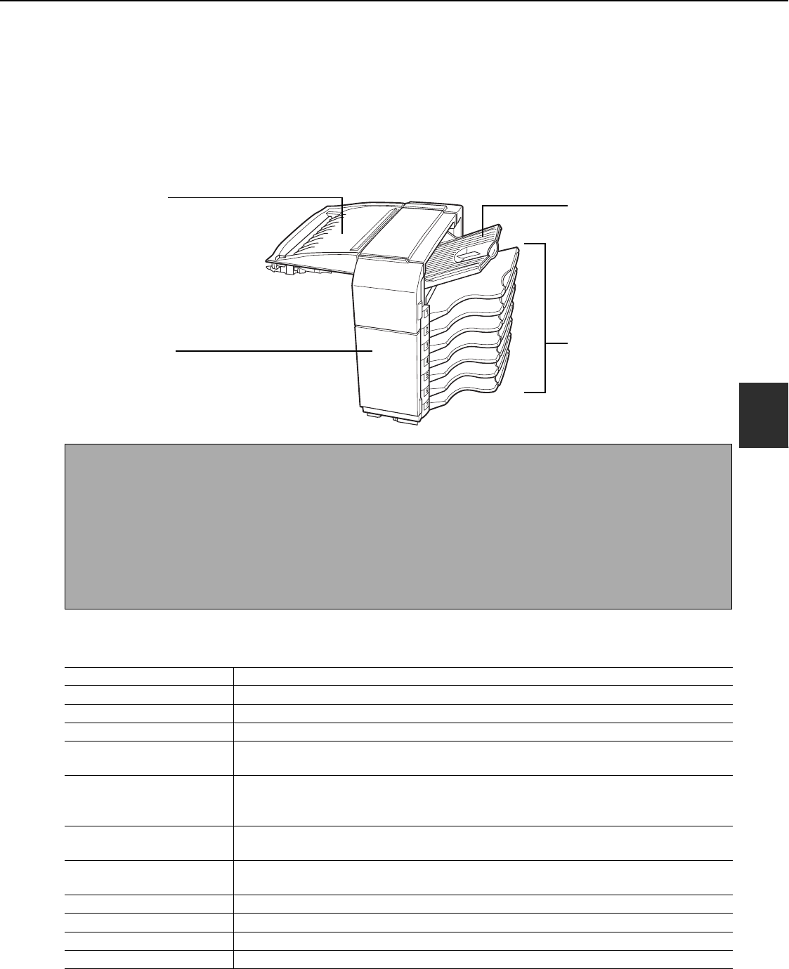● The mail-bin stacker requires the installation of other peripheral devices in order to be functional and cannot be