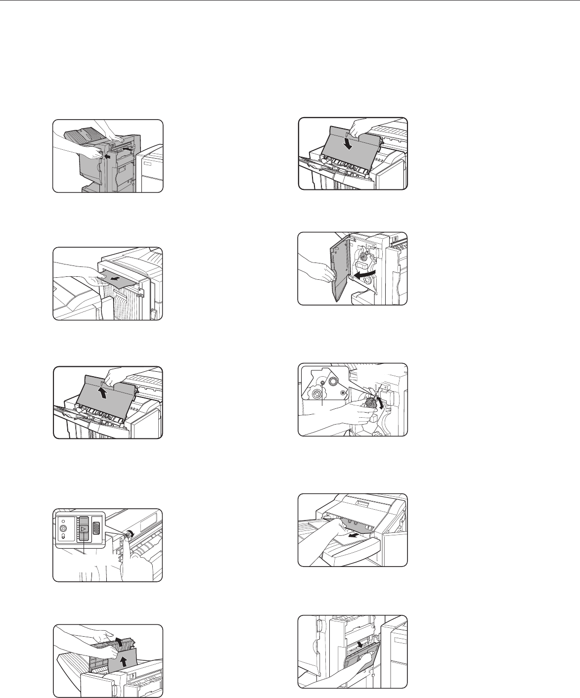If a misfeed has occurred in the saddle stitch finisher during printing, remove the misfed paper following the procedure