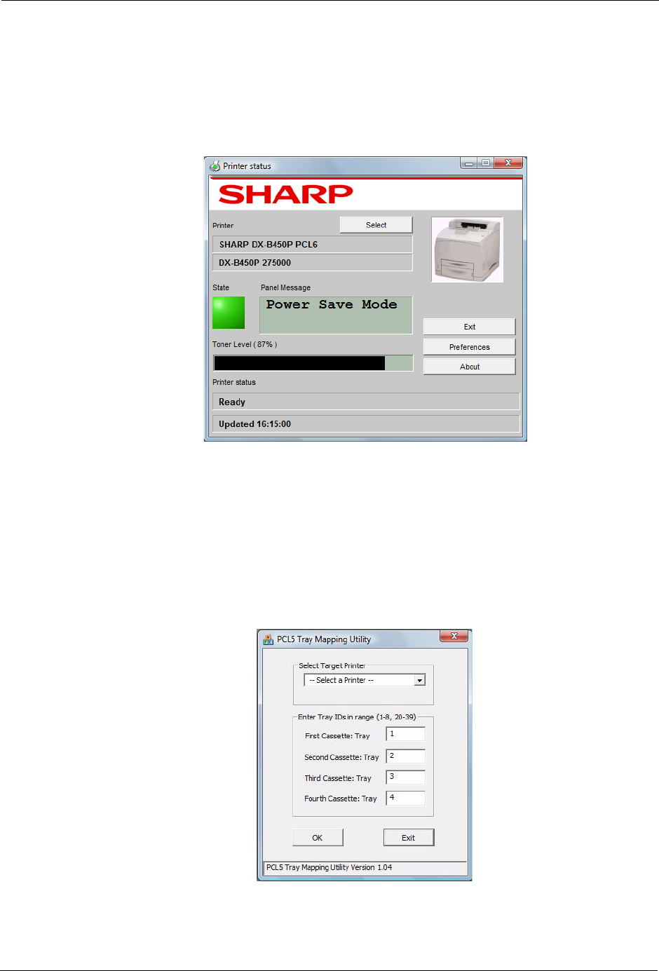 application can be used to select the desired paper trays. The Tray Mapping Utility changes the