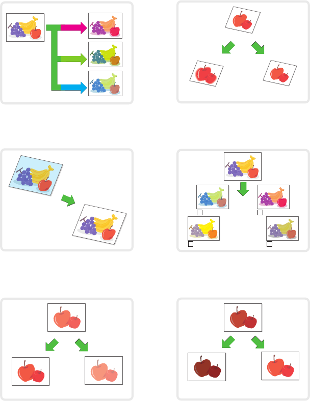 Images depicting "Color Adjustments" in the special modes of copy mode