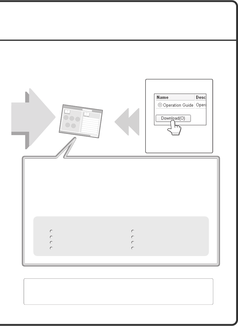 in PDF format. The Operation Guide can be downloaded from the Web pages in the machine.