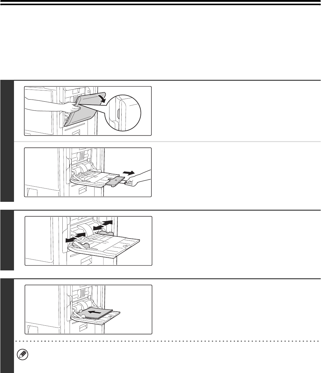 The bypass tray can be used to print and copy on plain paper, postcards, envelopes, label sheets, tab paper, and other
