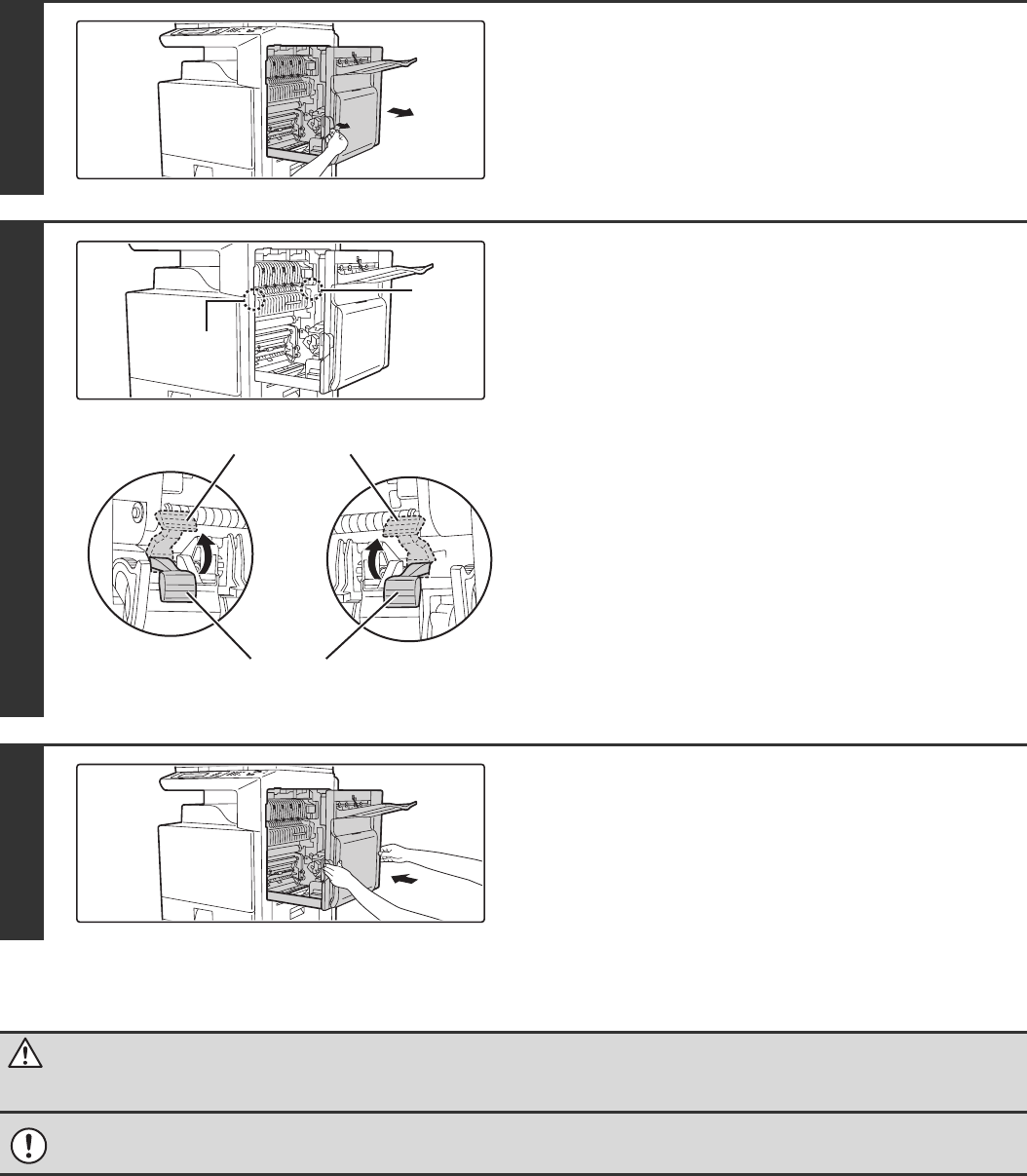 The fusing unit is hot. Take care not to burn yourself when operating the fusing unit pressure adjusting levers.