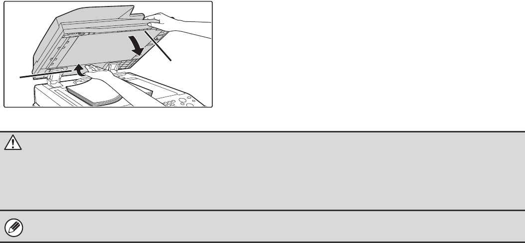 hand may become caught between the automatic document feeder and the machine.