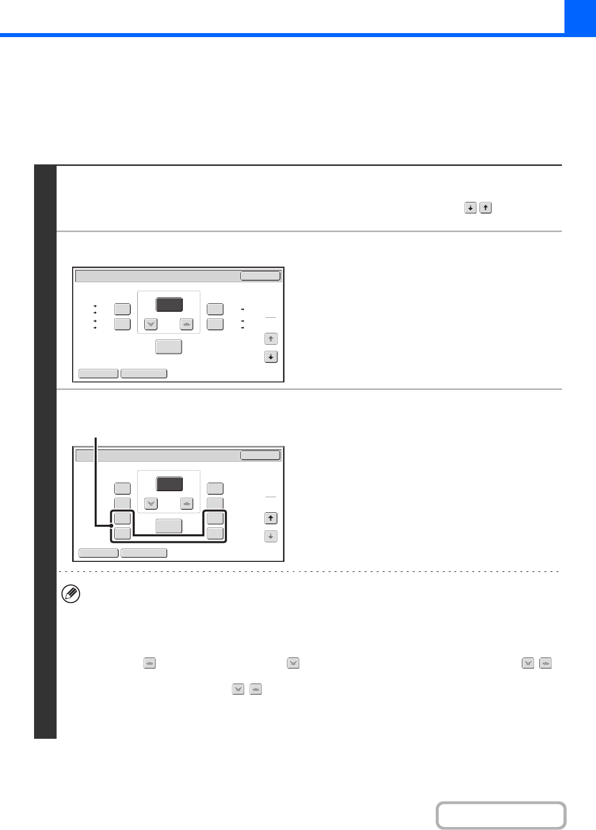 • To quickly select a ratio, touch a reduction or enlargement key to select a ratio close to the desired ratio and then