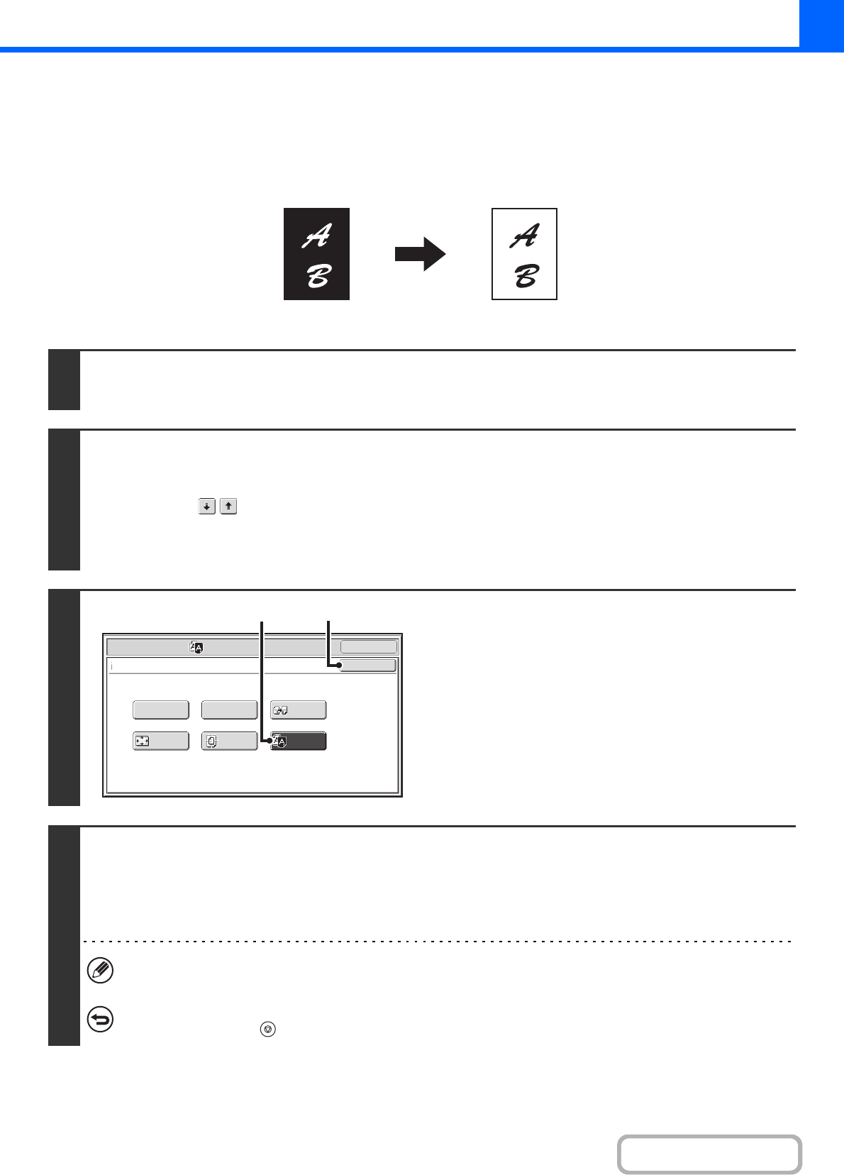 Originals with large black areas (which use a large amount of toner) can be copied using Black/White Reverse to reduce