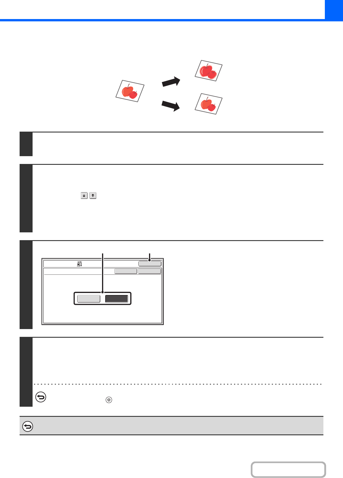 [OK] key to return to the base screen of copy mode.