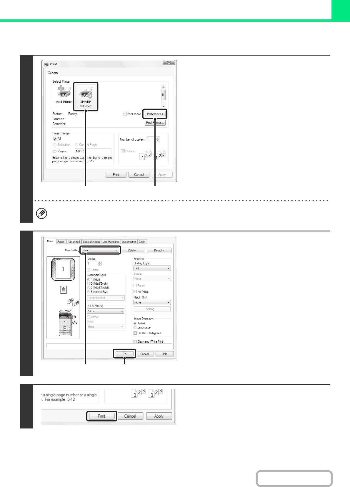 (1) Select the user settings that you wish to