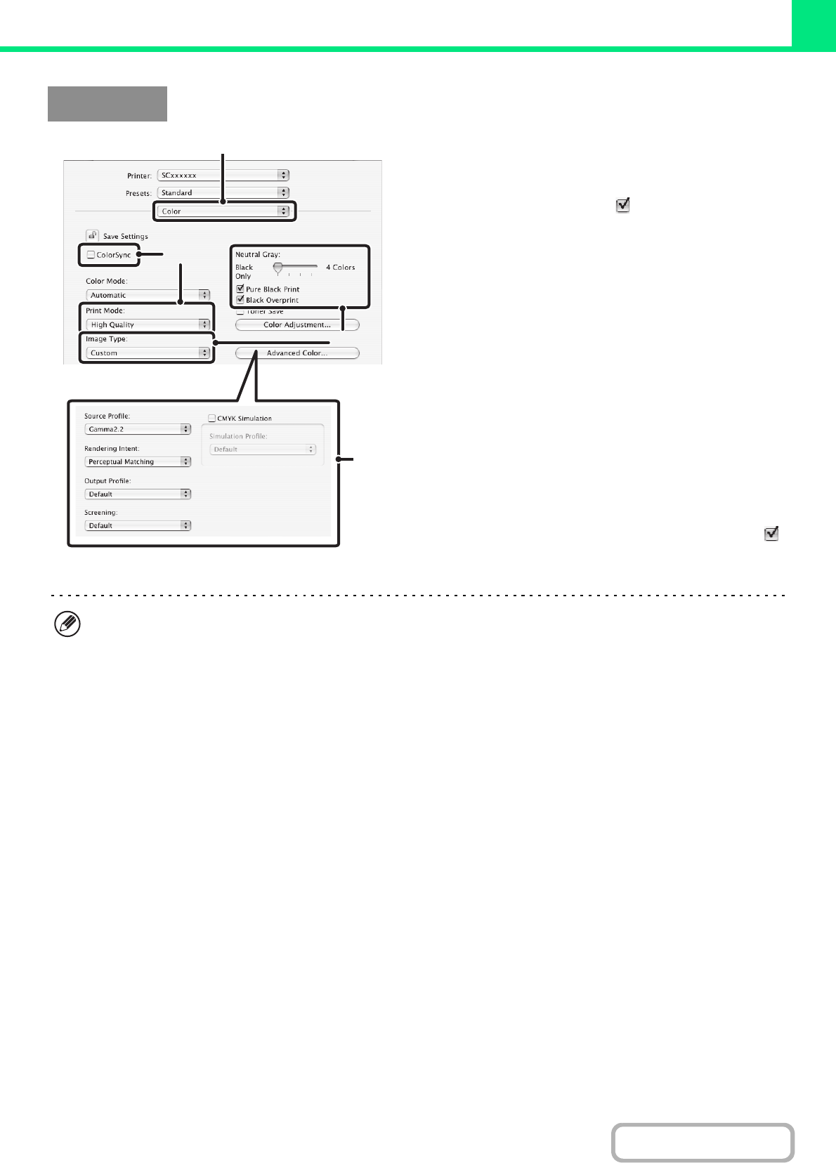 • In Mac OS 9, select [Color], [Color2], and [Color3] to configure color print settings.