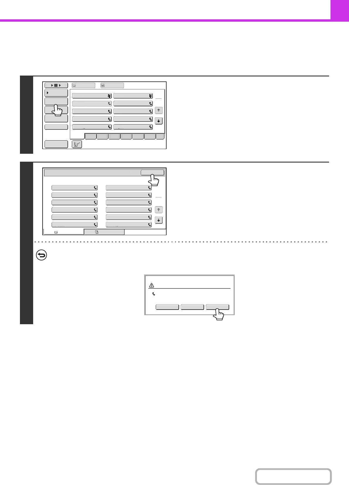 Touch the one-touch key of the destination that you wish to delete. A message will appear to confirm the deletion.